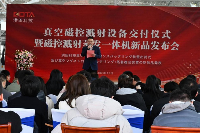 With the arrival of spring, beautiful scenery and great achievements and innovations come. In this beautiful season when grass and trees are spreading and everything is flourishing, KOTA Technology Co., Ltd. (hereinafter referred to as "KOTA Technology") held a vacuum magnetron sputtering equipment delivery and magnetron sputtering evaporation integrated machine new product launch conference on March 19. At the event, many well-known new energy companies such as Hanlin New Materials, Nord Shares, Yinglian Technology, Kechuan Technology, Zhongyi Technology, Hengtong Hanye, Zhenli New Materials, company executives, industry experts and upstream and downstream partners of the industrial chain, financial institutions, and media friends witnessed this grand event together. Chen Xiansheng, Vice Chairman of Dawson Shares and KOTA Technology, Mitsuda Mitsuya, General Manager of KOTA Technology, Zhu Kaixing, Deputy General Manager of Dawson Shares and KOTA Technology, Secretary of the Board of Directors, Liu Anlai, General Manager of Dawson Shares and Financial Director of KOTA Technology, and Japanese expert consultants and R&D directors of KOTA Technology attended the event.