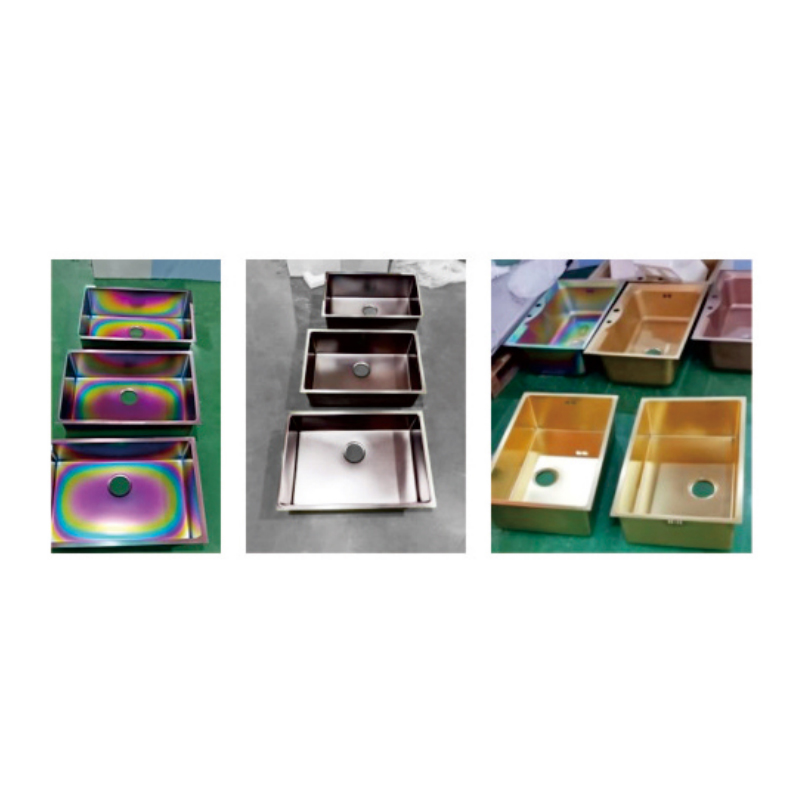 The specialized coating equipment for sinks is not only suitable for the production of kitchen sinks but also widely used in the fields of bathroom, hardware, automotive parts, electronic products, etc, providing surface treatment solutions for customers in these industries. In summary, the specialized coating equipment for sinks is an indispensable part of modern manufacturing It provides efficient surface treatment solutions for sinks and other products through advanced PVD technology.